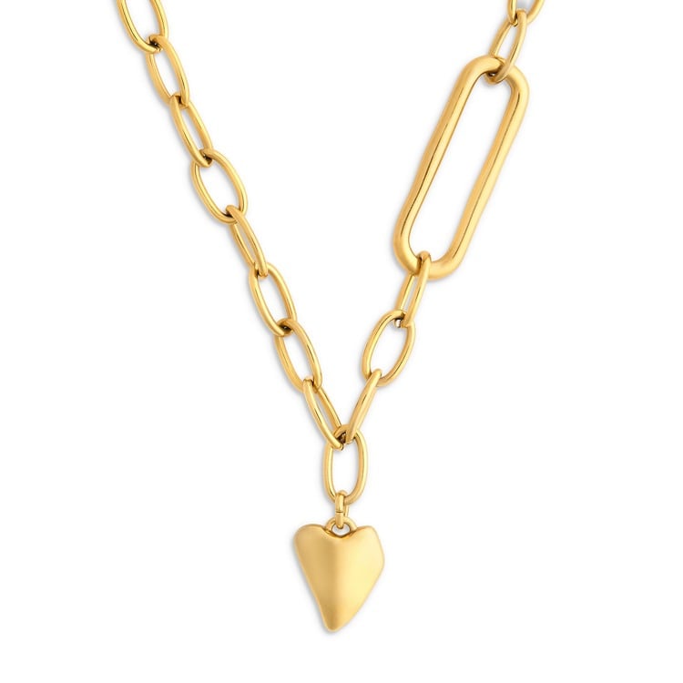 Gold Chunky Paper Clip Heart Necklace - 15in(+2in extender)